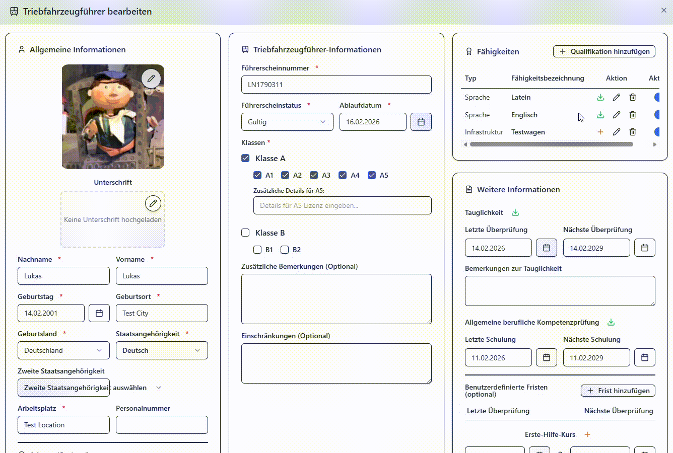 Über das Stammdatenblatt der Triebfahrzeugführer