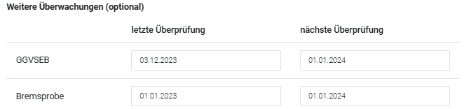 Die definierten Überwachungen erscheinen im Stammdatenblatt der Triebfahrzeugführer. Dort kann ein Datumswert für die letzte und die nächste Überwachung eingetragen werden. Die Frist ist frei wählbar.